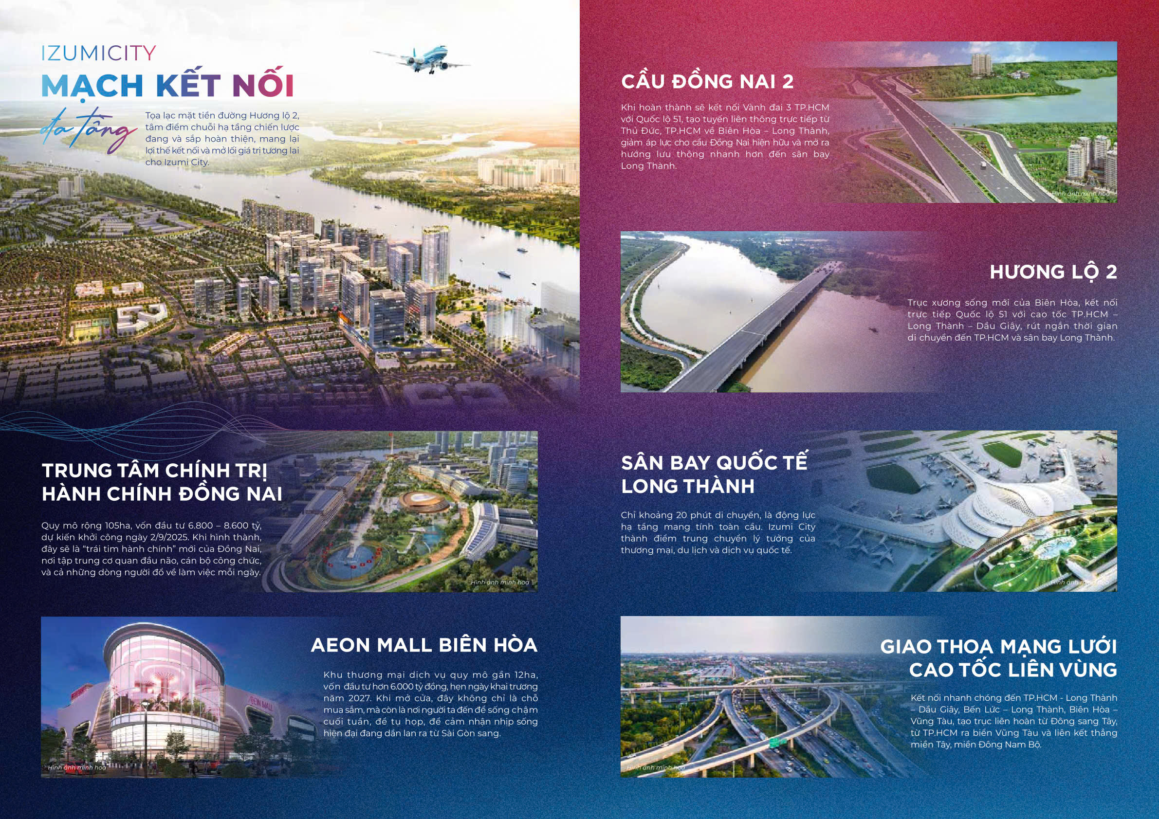 Ngày 15/01/2026, dự án cầu Long Hưng chính thức được khởi công, đánh dấu bước tiến quan trọng trong việc hoàn thiện hạ tầng khu Đông TP.HCM và TP. Biên Hòa. Công trình có tổng vốn đầu tư khoảng 12.000 tỷ đồng, quy mô 8 làn xe, dự kiến hoàn thành vào năm 2028. Khi đi vào hoạt động, cầu Long Hưng sẽ kết nối trực tiếp khu vực cù lao Long Hưng với TP. Thủ Đức và trung tâm Đồng Nai, tạo lợi thế kết nối vượt trội cho Izumi City và góp phần gia tăng giá trị bất động sản khu vực.