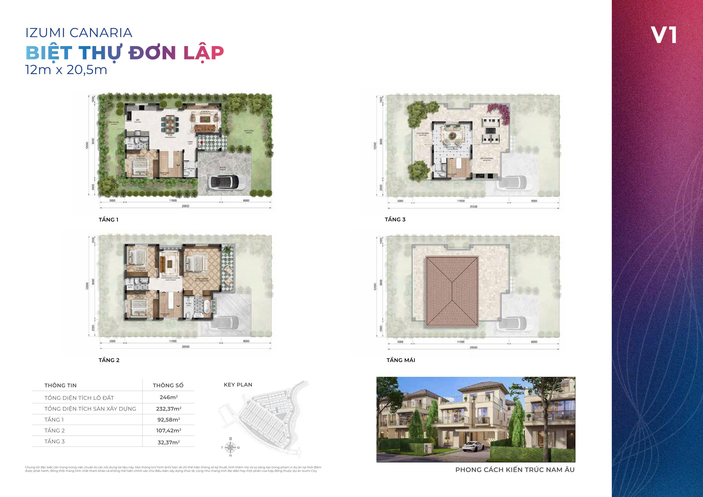 Diện tích 12x20m-28.8m: xây dựng 3 tầng, thiết kế sang trọng với không gian mở, sở hữu tầm nhìn thoáng hướng công viên.